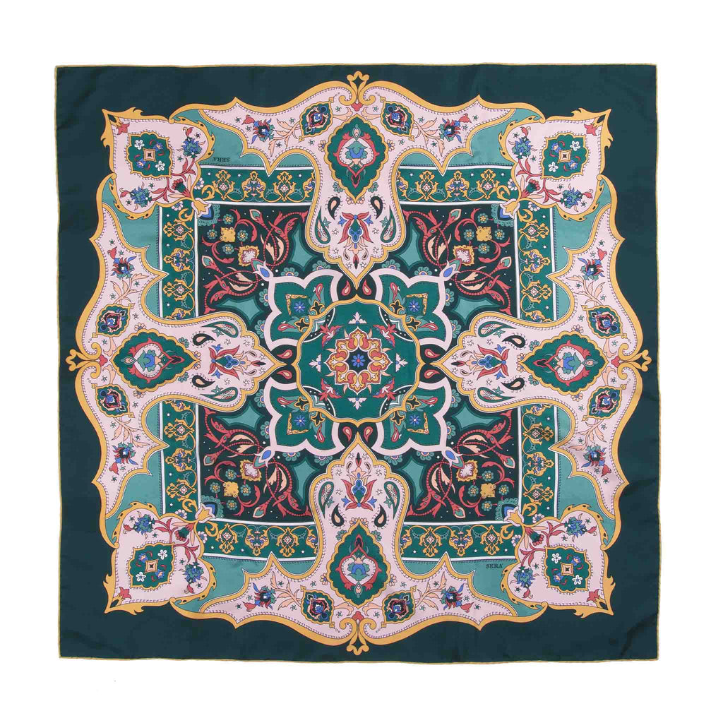 Flora - Green & Pink Silk Scarf