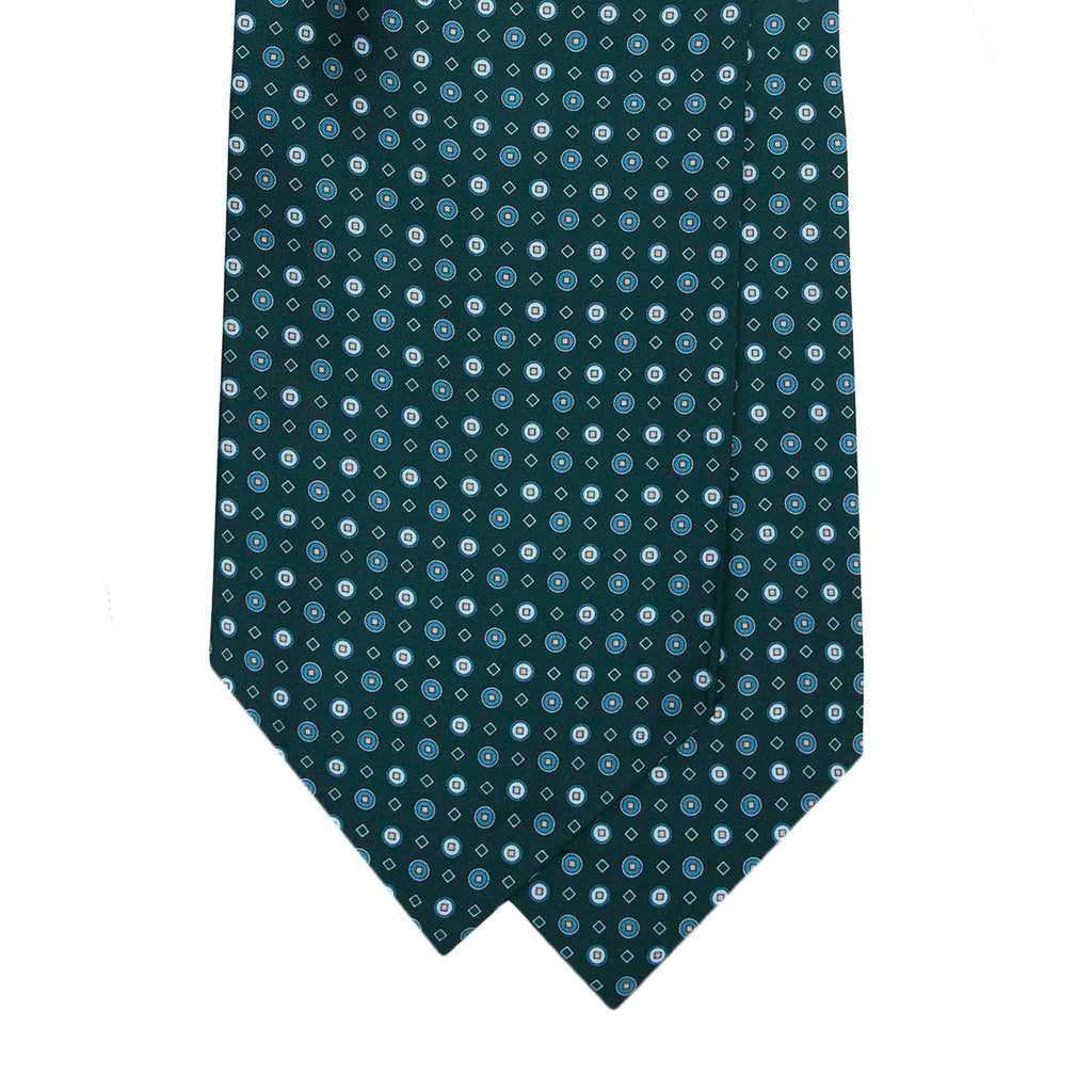 Green & Blue Circular Pattern Silk Ascot – Made in Italy