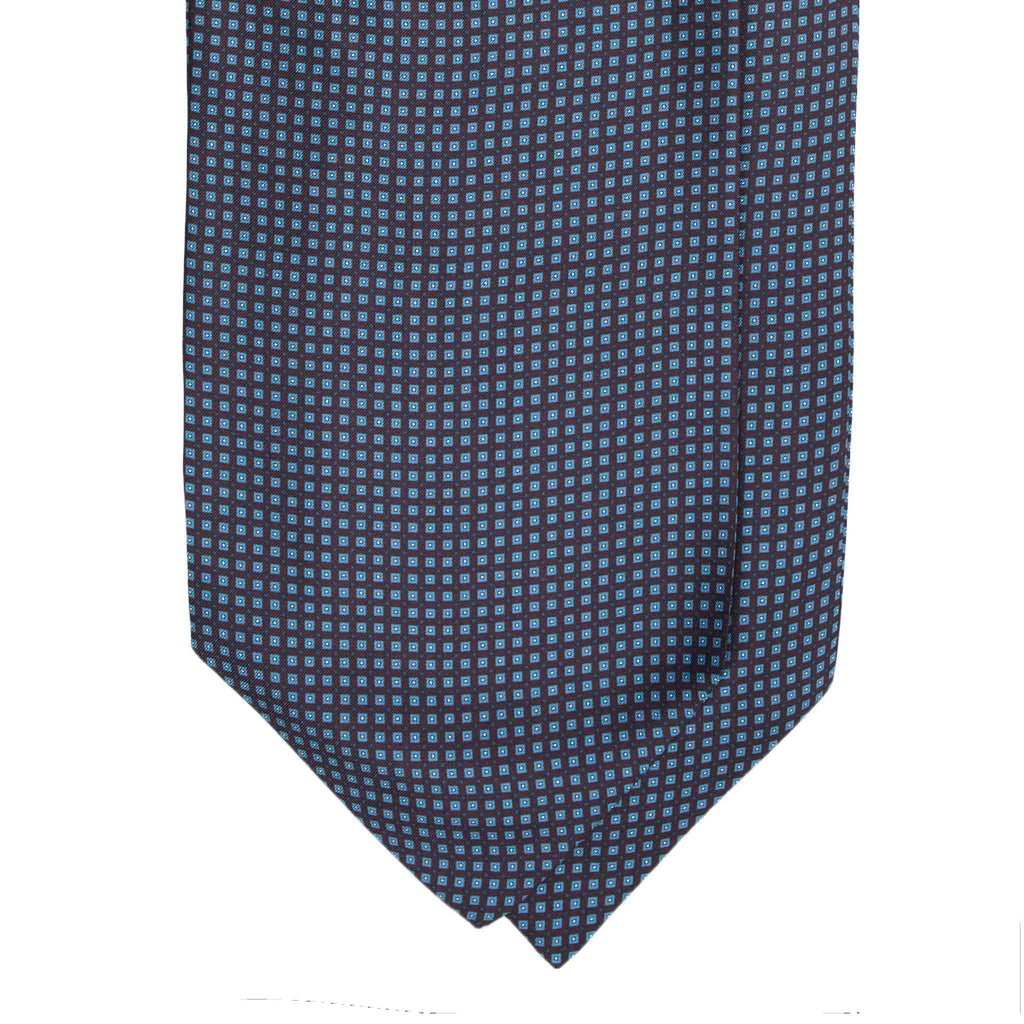 Modern and refined, this Brown Silk Ascot by Serà Fine Silk brings subtle sophistication to your wardrobe. Handcrafted in Como from 100% premium silk, it features a precise micropattern of light blue squares set against a rich brown background, creating an elegant play of contrast and symmetry. The smooth texture and gentle sheen of Como silk make it an ideal choice for both daywear and evening occasions.