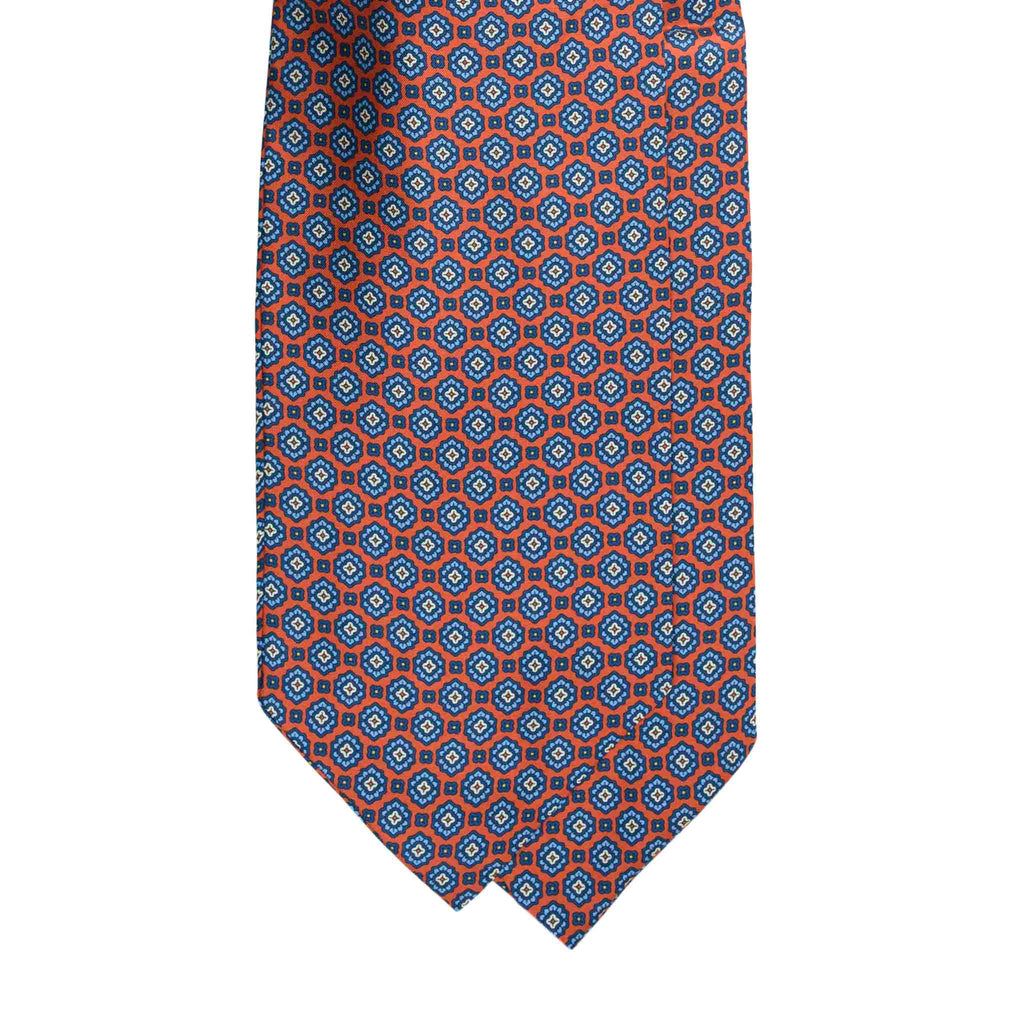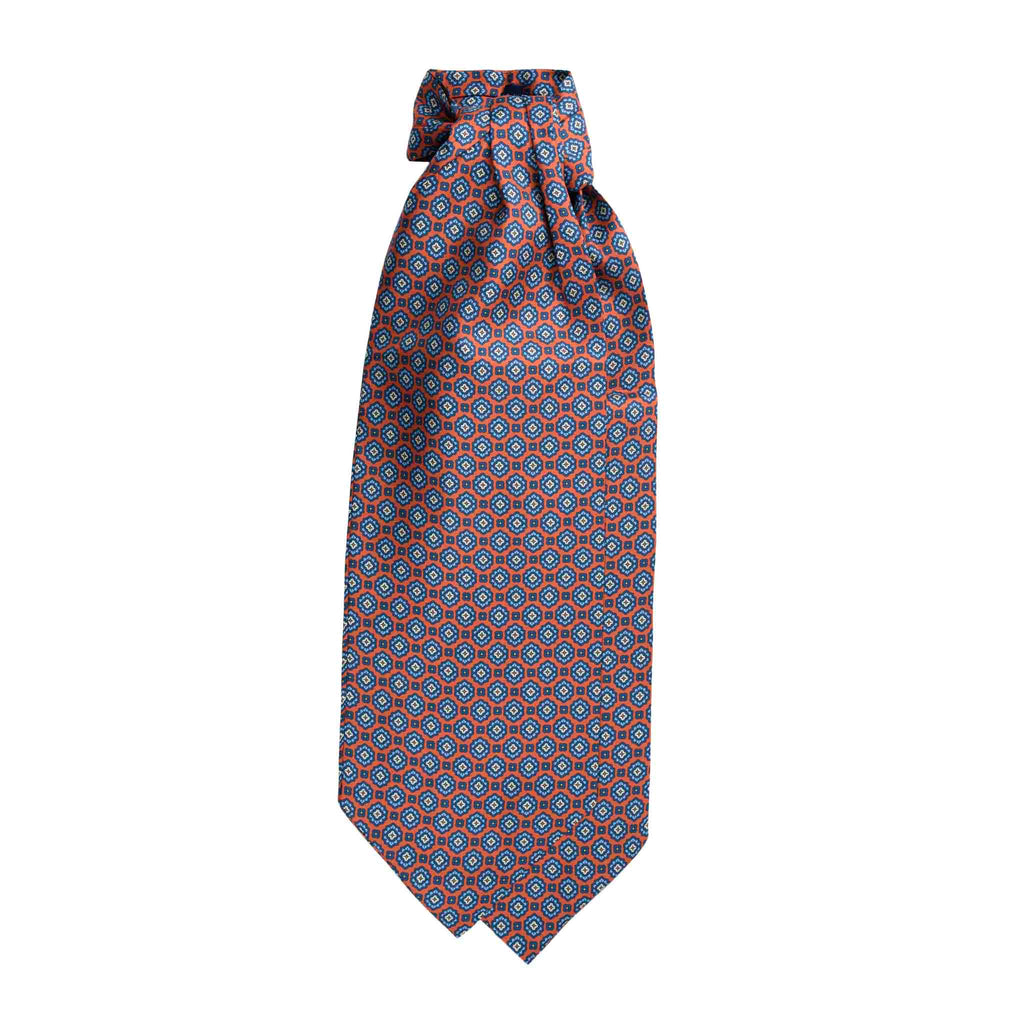 Orange Silk Ascot with Blue Floral Geometric Pattern – Made in Italy