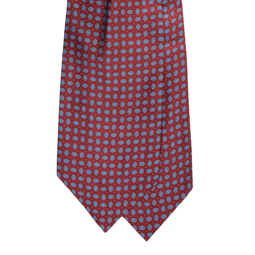 Red Silk Ascot with Light Blue Diamond Pattern – Made in Italy