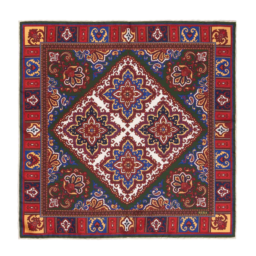 The Salt Primitivo Pocket Square brings a bold mix of red, green, and ivory—evoking the intensity of Primitivo wine—perfect for those who love a statement piece with timeless charm.